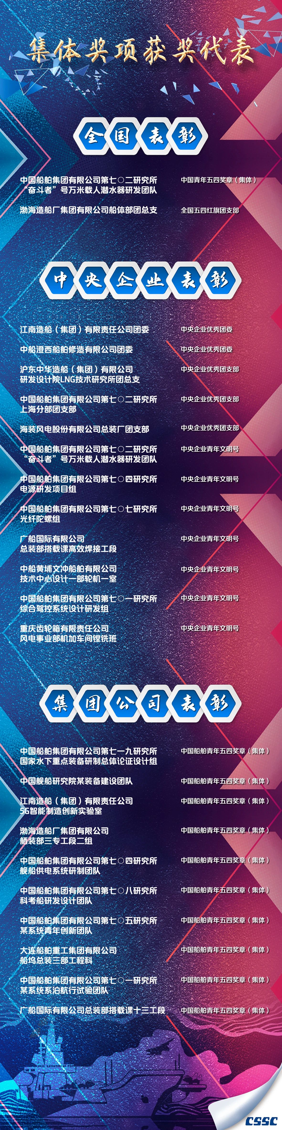 8月19日,中國(guó)船舶集團(tuán)有限公司召開表彰會(huì)議。會(huì)上宣讀了2021年集團(tuán)公司團(tuán)員青年獲得全國(guó)和中央企業(yè)榮譽(yù)的情況通報(bào),以及集團(tuán)公司黨組頒授首屆“中國(guó)船舶青年五四獎(jiǎng)?wù)隆钡臎Q定。