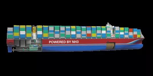 大船集團(tuán)與曼恩能源方案、英國(guó)勞氏船級(jí)社(LR)共同開發(fā)了“C-FUTURE” 零碳排放23000箱超大型集裝箱船。LR頒發(fā)了AIP證書。該船型率先提出“C-FUTURE”概念,創(chuàng)新性的采用液氨為動(dòng)力燃料,實(shí)現(xiàn)船舶零碳排放;曼恩最新研發(fā)的液氨燃料主機(jī)和大船集團(tuán)自主研發(fā)的燃料供應(yīng)系統(tǒng),匹配大型可調(diào)螺距螺旋槳,配合軸帶發(fā)電機(jī),提供船舶推進(jìn)動(dòng)力和電力供應(yīng);常壓、低溫、低蒸發(fā)率、高艙容利用率的A型燃料艙,為船舶提供了充沛續(xù)航。