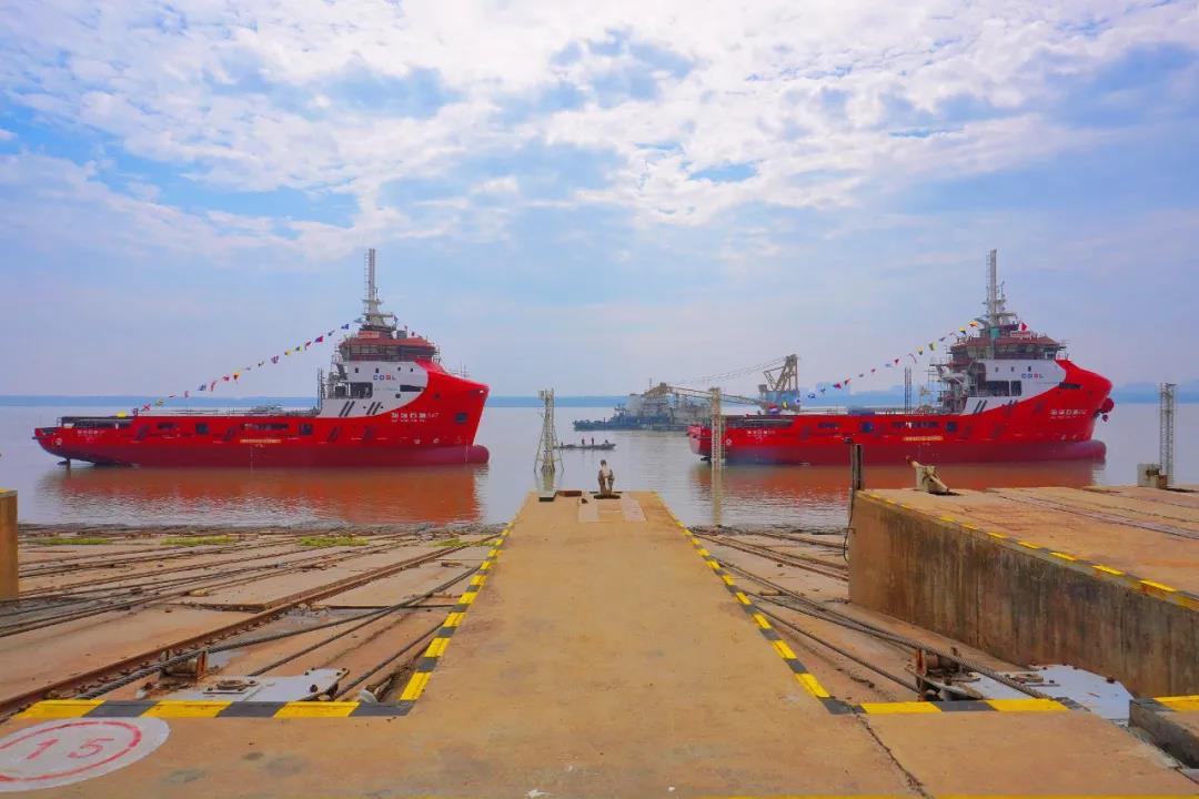 10月26日上午,中國船舶集團(tuán)旗下武船集團(tuán)為中海油田服務(wù)股份有限公司建造的兩型4000馬力LNG動力守護(hù)供應(yīng)船3號船“海洋石油542”和“海洋石油547”下水。