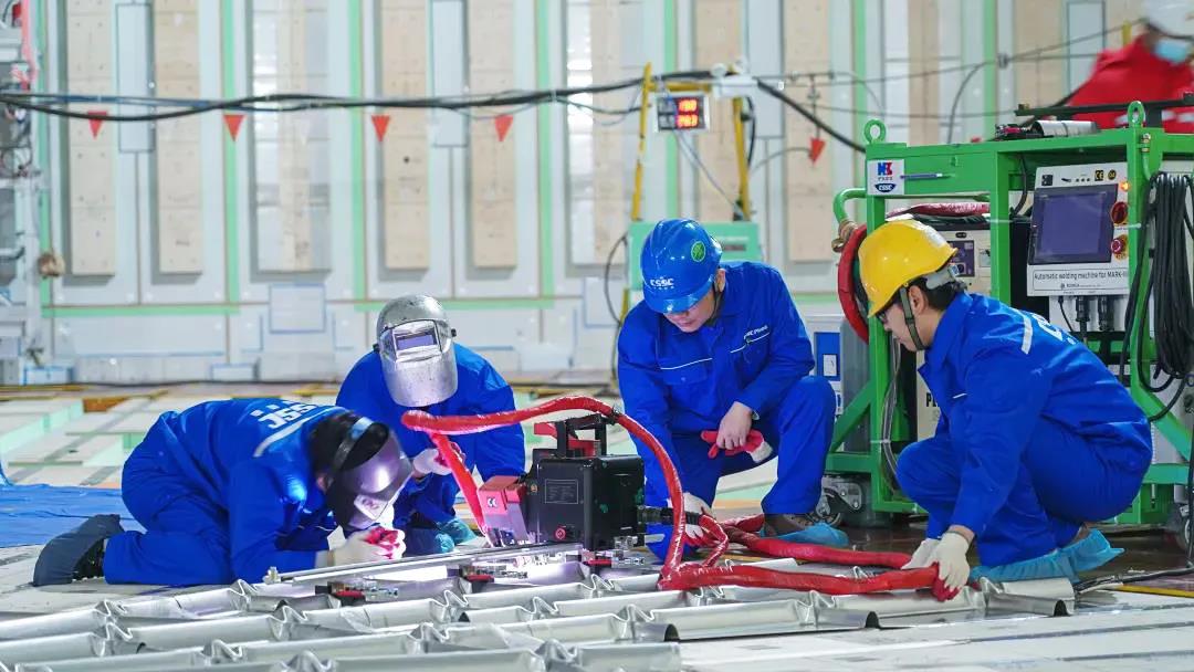 滬東中華是國際LNG儲運裝備制造領(lǐng)先企業(yè),是唯一能夠同時建造No.96、MARK Ⅲ兩型LNG薄膜艙的船企。在中國船舶集團高質(zhì)量發(fā)展戰(zhàn)略引領(lǐng)下,滬東中華不斷加強開拓LNG全產(chǎn)業(yè)鏈,其中也包括將Mark Ⅲ圍護系統(tǒng)技術(shù)由海向陸延伸。公司組織了最精干力量,應(yīng)用最先進技術(shù)工藝,實施最嚴(yán)格工程管理,派出130多人的建造團隊,奮戰(zhàn)在項目現(xiàn)場,執(zhí)行一流質(zhì)量標(biāo)準(zhǔn),與各方精誠合作,通過該項目逐步帶動大型LNG薄膜儲罐技術(shù)在中國推向深入。