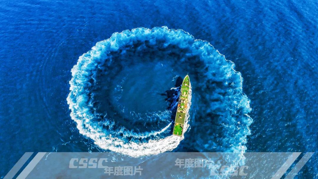 大型航標船“海巡156”號海上試航。回轉(zhuǎn)試驗時,藍色海面上留下了一個大大的“6”。該船是我國首艘具備破冰能力的大型航標船。