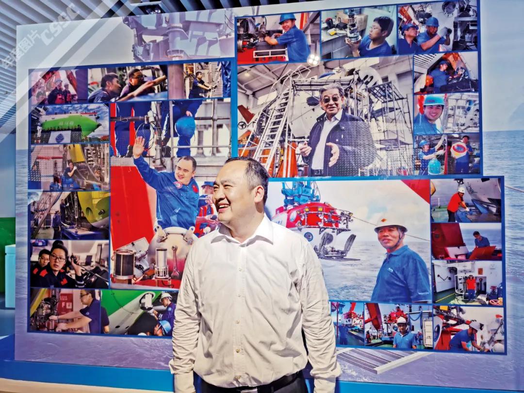 國企開放日期間, “奮斗者”號總設(shè)計師葉聰帶領(lǐng)眾多央媒記者走進中國船舶、深入船人一線,感受大國重器的張力!在展覽室的背景墻前,他縱然一笑,撒下江湖傳說。