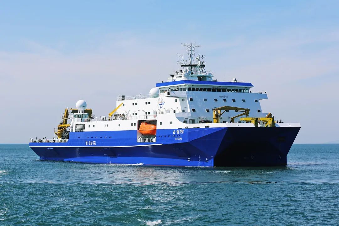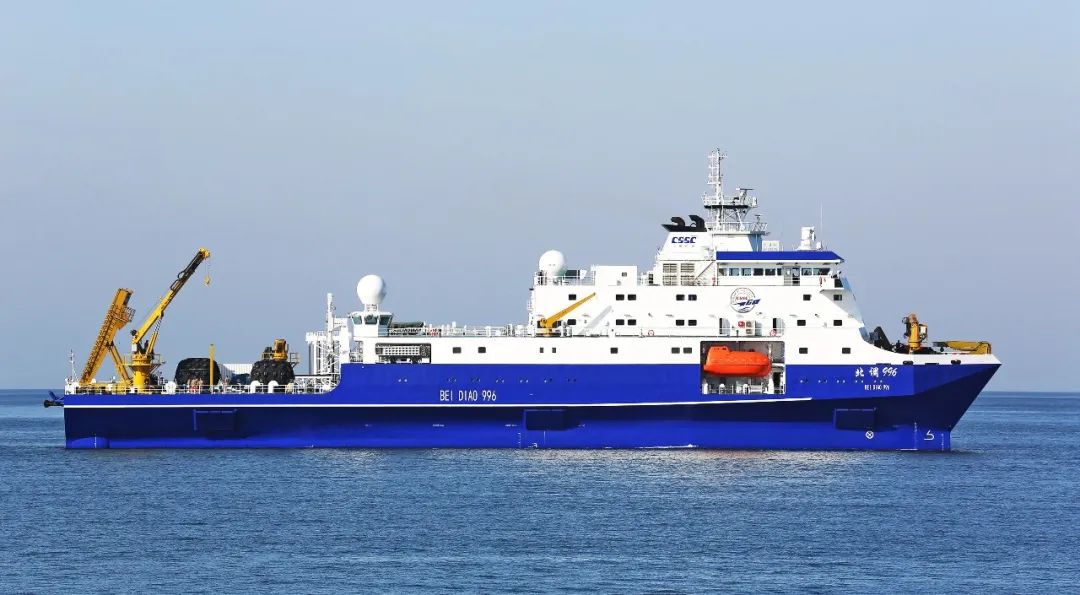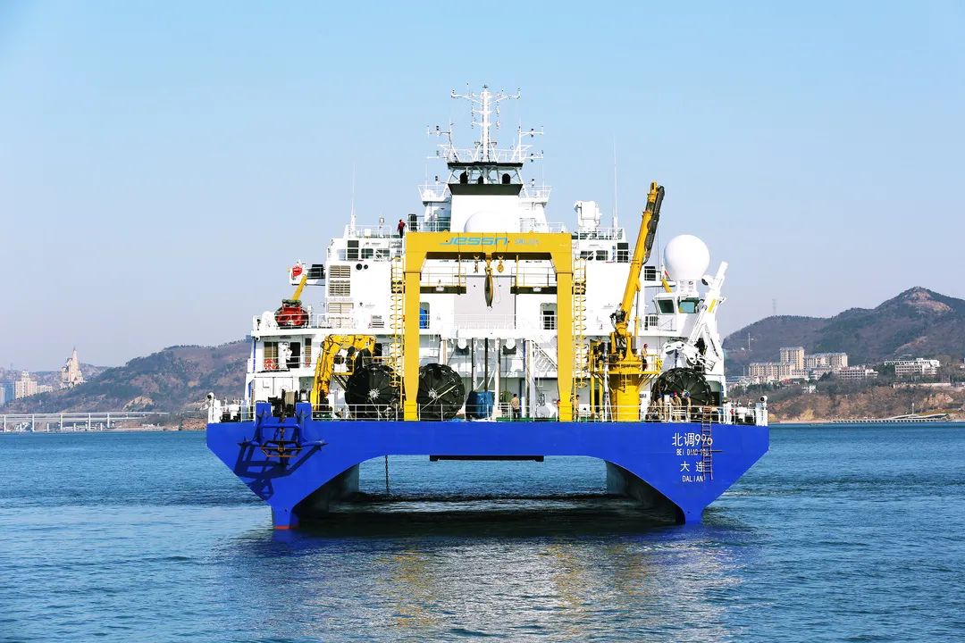 小水線面雙體船是一種水線面積小,且由兩個(gè)潛水體和一個(gè)水上箱體,中間有兩個(gè)流線型支柱連接起來的船舶。該船型耐波性好,能夠很好地解決深海作業(yè)浪大、波峰高等問題,利于在深海開展試驗(yàn)工作。該船于2019年8月26日開工,2021年3月20日下水,2022年3月23日完工,歷時(shí)2年零7個(gè)月時(shí)間。該船總長99.8米,型寬32米,吃水7.5米,型深13.2米,航速15節(jié),排水量6700噸。