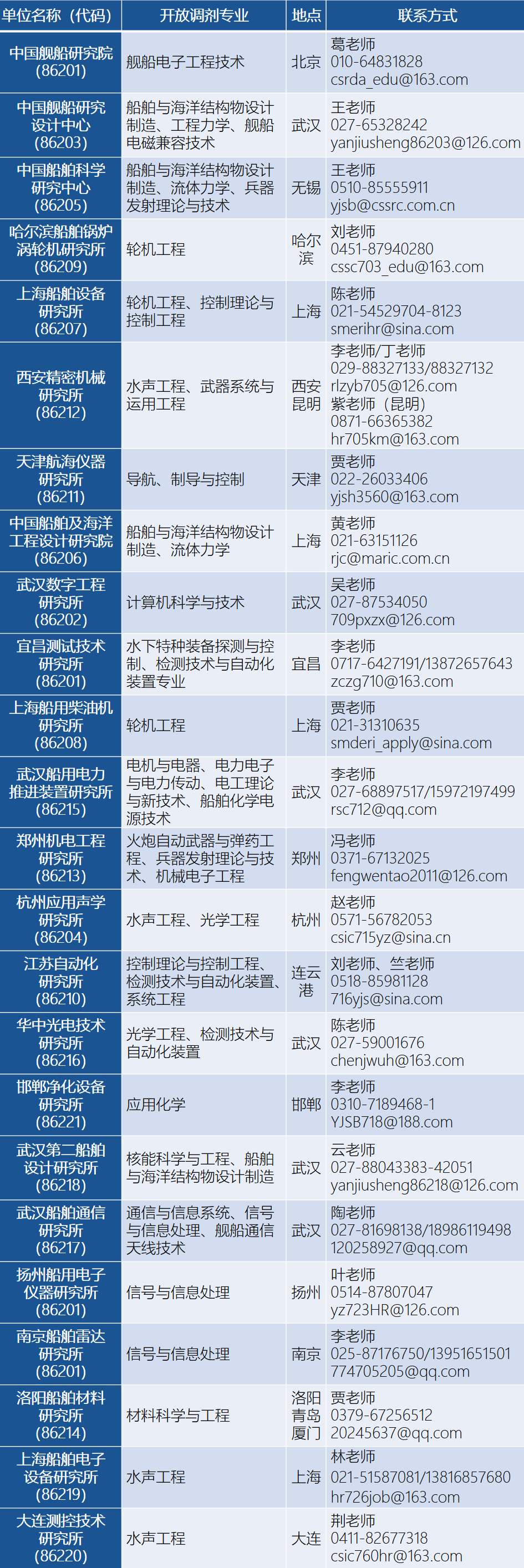 請考生將簡歷、本科成績單、初試成績單等材料打包(文件名以“姓名+初試總分+本科院校+本科專業(yè)+申請調(diào)劑培養(yǎng)單位+申請調(diào)劑專業(yè)”命名,如張三+345+哈爾濱工程大學+船舶與海洋結(jié)構(gòu)物設(shè)計制造+中國艦船研究設(shè)計中心+船舶與海洋工程)投遞調(diào)劑單位聯(lián)系人郵箱,由培養(yǎng)單位對滿足調(diào)劑條件考生擇優(yōu)篩選后,通知考生參加復(fù)試。