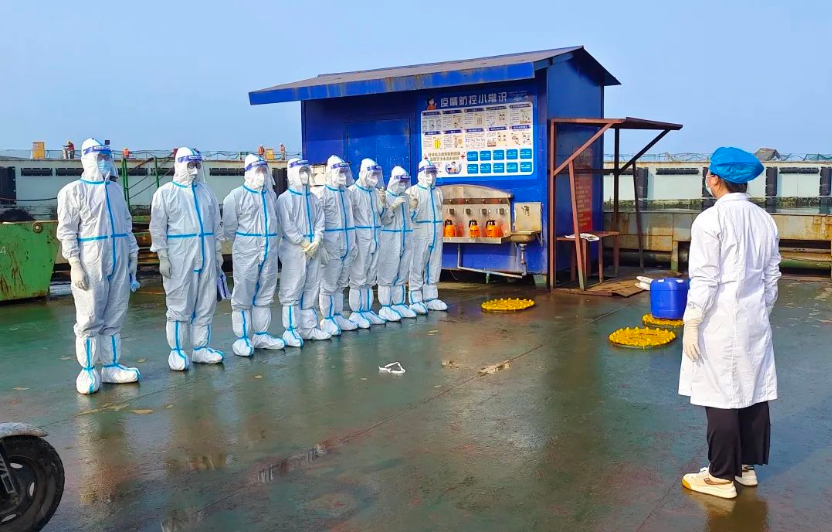 在每一艘船舶即將駛向交付目的地時(shí),中船廣西防疫辦專(zhuān)門(mén)組織專(zhuān)業(yè)的醫(yī)護(hù)人員對(duì)參與送船的員工進(jìn)行防護(hù)培訓(xùn),并開(kāi)展應(yīng)急演練,同時(shí)要求船舶靠岸時(shí)統(tǒng)一穿著防護(hù)服,無(wú)指令不得上岸。此外,該公司還安排專(zhuān)車(chē)對(duì)送船員工進(jìn)行點(diǎn)對(duì)點(diǎn)接送,杜絕一切與外界接觸的可能。