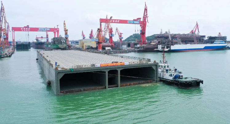 這是中國(guó)船舶集團(tuán)旗下廣船國(guó)際35天完成制造、今天交付出塢的深中通道海底隧道沉管E24管節(jié)鋼殼!