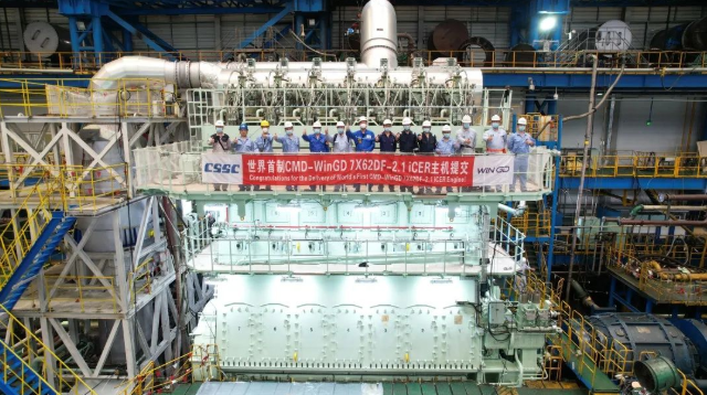 由中國船舶集團旗下中船動力集團研制的全球首臺新一代智能控制廢氣再循環(huán)(iCER)系統(tǒng)的雙燃料主機7X62DF-2.1,作為向二十大獻禮的重點產(chǎn)品,不僅豐富了我國雙燃料主機的型譜,提升了市場競爭力,也標(biāo)志著中國繼全球最大船用雙燃料低速機X92DF之后,在船用低速雙燃料發(fā)動機研發(fā)制造領(lǐng)域保持新的優(yōu)勢,實現(xiàn)新的跨越。