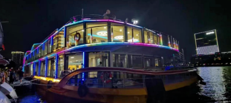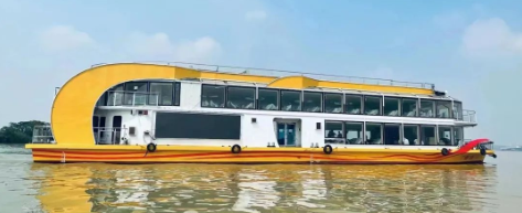 “廣游19”配置3015kWh純鋰電池驅(qū)動,Z形全回轉(zhuǎn)舵槳推進(jìn),經(jīng)濟(jì)航速下可滿足7小時續(xù)航要求。船體上建采用大面積玻璃幕墻,具有開闊的觀光視野,可360度觀賞珠江日景夜景,可提供江景游覽、娛樂餐飲、會議招待、婚禮、音樂舞會、年會等綜合服務(wù)。