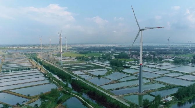 在華北平原的田埂上,一臺(tái)臺(tái)由鋼混塔筒搭載的風(fēng)電機(jī)組不僅發(fā)出綠電,白色的大風(fēng)車還點(diǎn)綴其中,與農(nóng)田相映成趣,勾勒出一派鄉(xiāng)村美景,成為鄉(xiāng)村旅游的網(wǎng)紅打卡地。