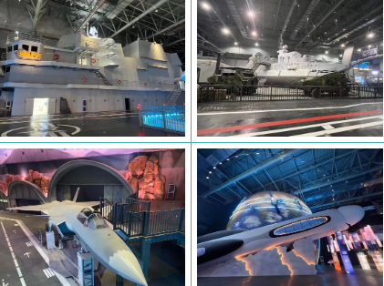 以先進武器裝備為原型,館內建有全比例、高比例航母艦島、核潛艇、奮斗者號載人深潛器、殲20飛機、運20飛機、天宮空間站、星火號宇宙飛船、99A坦克等,集成聲光電、虛擬現(xiàn)實、動感平臺等對標國際一線主題樂園的體驗技術,采用多種體驗形式和手段,編制精彩成長歷險故事,以主題游樂、研學教育、科普展示、文創(chuàng)商業(yè)等多種業(yè)態(tài),為游客帶來一場高科技、新技術的軍事主題沉浸體驗。