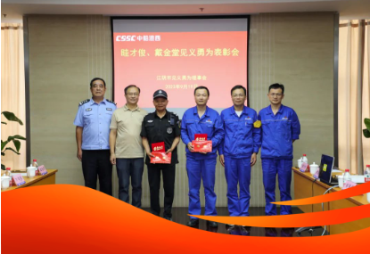 9月19日,江陰市見義勇為基金會(huì)專程來(lái)到中國(guó)船舶集團(tuán)旗下中船澄西,對(duì)生產(chǎn)管理部眭才俊進(jìn)行表彰。