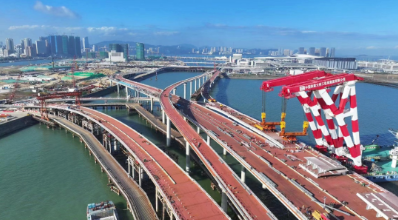 12月15日,隨著最后一節(jié)段鋼梁精準(zhǔn)對位至CP8~CP9墩頂支座上,澳氹第四條跨海大橋72節(jié)段鋼梁吊裝任務(wù)全部完成大橋引橋和匝道實(shí)現(xiàn)全部合攏。