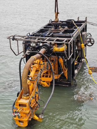 此次試驗(yàn)的深海多金屬硫化物采礦車長(zhǎng)8.2米,寬3.9米,高3.5米,空氣中重量21噸,突破了水下布放回收姿態(tài)自動(dòng)定向控制、深水大功率液壓驅(qū)動(dòng)、信號(hào)傳輸與智能控制、三維數(shù)字孿生可視化等關(guān)鍵技術(shù),開發(fā)了擺動(dòng)銑削式挖掘頭、四履帶懸掛車架和具有自主行走功能的集成控制系統(tǒng),解決了硬礦挖掘、陡坡行走和遠(yuǎn)程集控的難題。