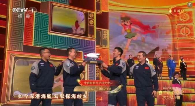 在2024年的春晚舞臺(tái)上 ,《看動(dòng)畫片的我們長(zhǎng)大了》這個(gè)節(jié)目引起觀眾廣泛共鳴。中國(guó)船舶集團(tuán)七〇二所“蛟龍”號(hào)載人潛水器研制團(tuán)隊(duì)代表參與其中,給人留下了十分深刻的印象??础赌倪隔[?!返奈覀?,如今深潛海底、駕馭探海蛟龍。