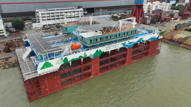 中國船舶集團(tuán)旗下廣船國際建造的半潛式深遠(yuǎn)海智能養(yǎng)殖旅游平臺“普盛海洋牧場6號”命名交付。