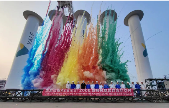 日前,中國船舶集團旗下中船澄西為Anemoi Marine Technologies公司建造的最新型5套35米折疊式船用轉(zhuǎn)子帆順利交付發(fā)運。據(jù)悉,該項目轉(zhuǎn)子帆將安裝在全球最大礦砂船——40萬噸級Valemax型“Sohar Max”號上,屆時將組成目前全球最大的風(fēng)力轉(zhuǎn)子推進系統(tǒng),標(biāo)志著中船澄西在深耕綠色船舶節(jié)能減排、攻堅轉(zhuǎn)子帆建造領(lǐng)域再次取得重大突破。