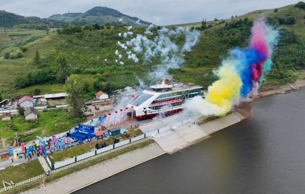 “天河一號(hào)”在東北地區(qū)內(nèi)河游覽船領(lǐng)域創(chuàng)下了多個(gè)“之最”:投資金額最大、噸位最大、載客人數(shù)最多、推進(jìn)功率最高、服務(wù)功能最齊全。作為吉林省首艘混合動(dòng)力綠色新能源船舶,同時(shí)也是首艘超過(guò)500客位的大型游覽船,“天河一號(hào)”的亮相為松花江增添了一道亮麗的風(fēng)景線。