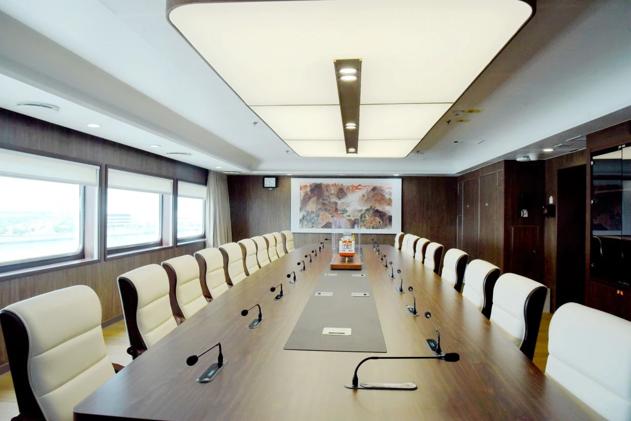 “夢想”號(hào)的室內(nèi)裝飾不僅追求功能性和居住環(huán)境的美化,更是對(duì)新時(shí)代中國文化自信的表達(dá)。其室內(nèi)裝飾風(fēng)格以現(xiàn)代家具為主,局部搭配中式家具,再配以水墨畫、傳統(tǒng)裝飾品、云紋裝飾圖案、瓷器等中式元素,讓來自世界各地的科學(xué)家在忙碌的工作之余也能感受到中國文化的內(nèi)涵。