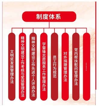 把精神文明建設作為全面推進單位發(fā)展的重要保障,與中心工作同謀劃、同部署、同檢查、同落實,通過體系化、制度化、規(guī)范化建設,形成“黨委統(tǒng)一領導,文明辦歸口管理,職能部門協(xié)同負責,全員共同參與”的工作格局。建立法治誠信建設、行為文明規(guī)范、創(chuàng)建考核與評先等管理辦法,形成科學完備的制度體系,推動創(chuàng)建工作科學化、制度化、規(guī)范化。