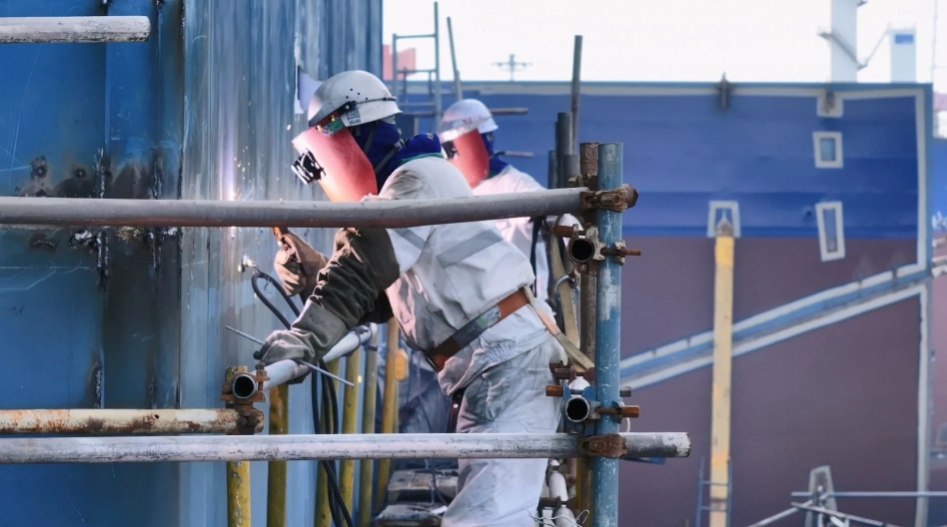 如今的江南造船寬敞明亮、干凈整潔,車(chē)間里、船塢內(nèi)、碼頭上……身著不同顏色工裝的作業(yè)人員在各自崗位上有序地工作。廠區(qū)內(nèi)懸掛著顯眼的“擔(dān)高質(zhì)量發(fā)展的先行者 當(dāng)傳統(tǒng)制造業(yè)的顛覆者”標(biāo)語(yǔ),以造船界優(yōu)秀前輩命名的廠區(qū)道路兩旁懸掛著江南造船科創(chuàng)大會(huì)的優(yōu)秀獲獎(jiǎng)?wù)邆兊暮?bào),新舊交替的一代代造船界前輩激勵(lì)著每一位江南人不斷向前。