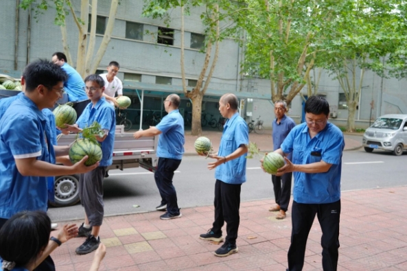 “這西瓜真新鮮!”“今年的西瓜肯定甜!”一個(gè)個(gè)滾圓的西瓜遞到職工們汗?jié)竦氖种?,大家邊卸西瓜邊聊天,現(xiàn)場(chǎng)傳來(lái)陣陣歡笑。此前,中船河柴已為一線職工發(fā)放綠豆、冰糖等防暑降溫用品,在生產(chǎn)現(xiàn)場(chǎng)安排專人熬煮綠豆湯,及時(shí)有效服務(wù)職工。接下來(lái),中船河柴將結(jié)合天氣情況,動(dòng)態(tài)調(diào)整“送清涼”計(jì)劃,分批次發(fā)放防暑降溫物資,為夏季安全生產(chǎn)提供堅(jiān)強(qiáng)保障。