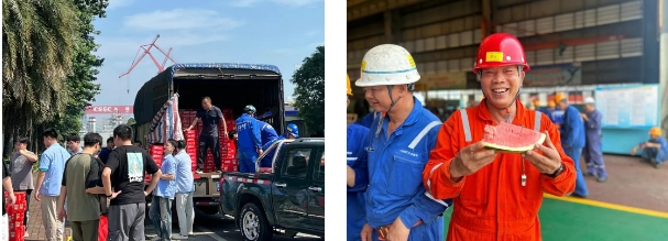廣船國(guó)際始終將員工身心健康與安全生產(chǎn)放在首位,用科學(xué)調(diào)度、貼心保障的“組合拳”,撐起“清涼保護(hù)傘”。該公司向全體工會(huì)會(huì)員發(fā)放慰問清涼飲料,做好防暑降溫工作,保障員工健康;所屬文沖修造常態(tài)化開展“送清涼”活動(dòng),各部門自發(fā)熬煮糖水、派發(fā)西瓜,讓“清涼”直抵崗位、暖到心間。