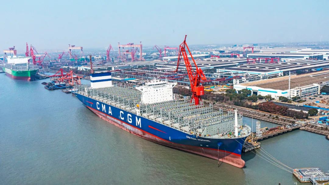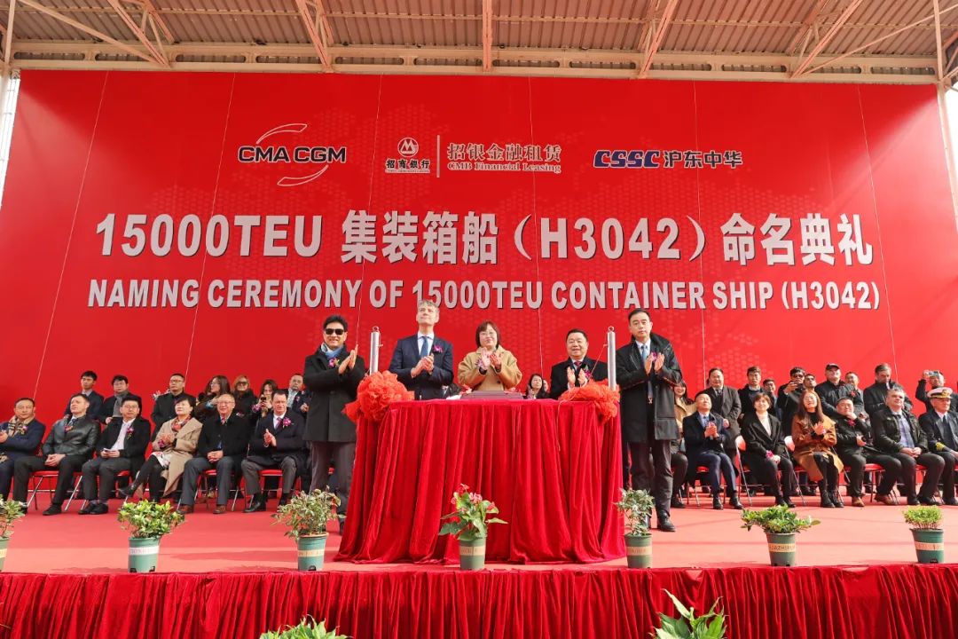 2月28日,中國船舶集團(tuán)有限公司旗下滬東中華造船(集團(tuán))有限公司聯(lián)合中國船舶工業(yè)貿(mào)易有限公司為法國達(dá)飛海運(yùn)集團(tuán)建造的15000TEU超大型集裝箱船“達(dá)飛·阿多尼斯”號(hào)在上海命名。這不僅是為達(dá)飛集團(tuán)量身定制的5艘常規(guī)動(dòng)力系列箱船中的最后一艘,實(shí)現(xiàn)了平均每月命名交付一艘的既定目標(biāo),也是繼由該公司建造的5艘全球首創(chuàng)最大、最先進(jìn)23000TEU雙燃料動(dòng)力集裝箱船之后,又一款被市場追捧的超大型集裝箱船項(xiàng)目完美收官,進(jìn)一步鞏固了其全球超大型箱船建造基地的地位。
