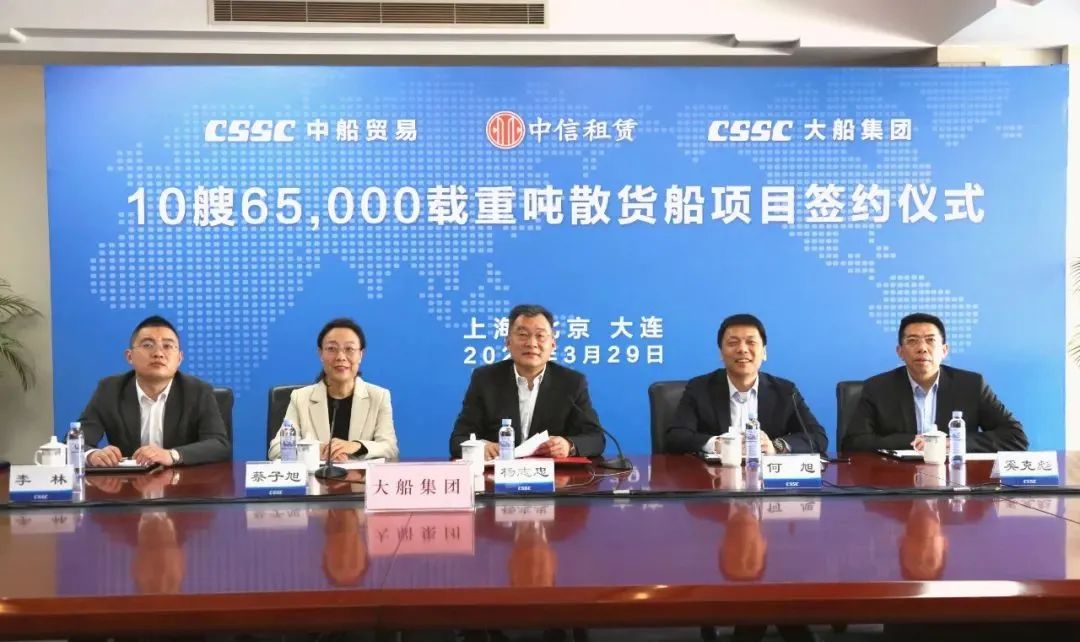 3月29日,中國(guó)船舶集團(tuán)旗下中船貿(mào)易聯(lián)合大船集團(tuán)與中信金融租賃有限公司以“云簽約”的形式正式簽署10艘6.5萬噸散貨船新造船合同。該批船舶完工交付后將租賃給國(guó)內(nèi)一流航運(yùn)公司,服務(wù)國(guó)家資源能源運(yùn)輸,主要運(yùn)營(yíng)國(guó)內(nèi)沿海航線及長(zhǎng)江沿線。