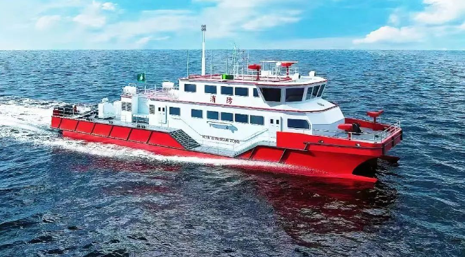 3月18日,中國澳門海關(guān)消防救援船在梧州舉行開工儀式。該項目由中國船舶集團(tuán)廣州公司下屬澳門公司承接,中船廣西下屬桂船公司建造,七〇一所下屬武漢船舶設(shè)計研究院設(shè)計,采用雙體穿浪船型,全鋁合金焊接結(jié)構(gòu)。