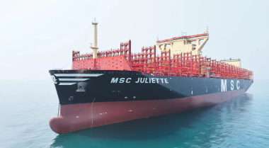 “MSC 朱麗葉”號安裝脫硫塔并預(yù)留液化天然氣(LNG)動力功能,采用全新理念的環(huán)保減碳減阻設(shè)計,滿足最新的環(huán)保排放標(biāo)準(zhǔn),是一款綠色環(huán)保、高效節(jié)能的大型集裝箱船。