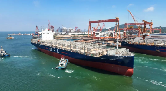 日前,中國船舶集團旗下中船貿易聯(lián)合北海造船,為達飛輪船建造的第五艘5500TEU集裝箱船命名交付。