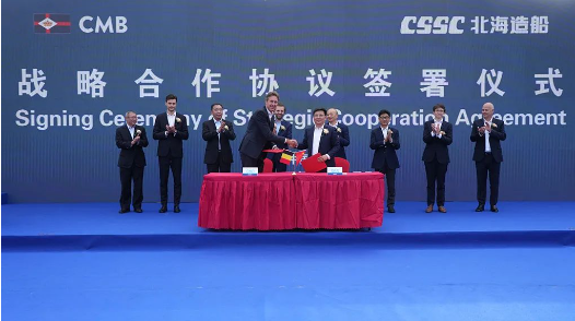 北海造船與比利時(shí)CMB.TECH公司簽署戰(zhàn)略合作協(xié)議。雙方將秉持優(yōu)勢互補(bǔ)、互利共贏的態(tài)度,持續(xù)拓展合作深度與廣度,聚焦市場推出綠色燃料船,共同研發(fā)低碳和零排放技術(shù),為打造國際綠色航運(yùn)新生態(tài)作出更大貢獻(xiàn)。