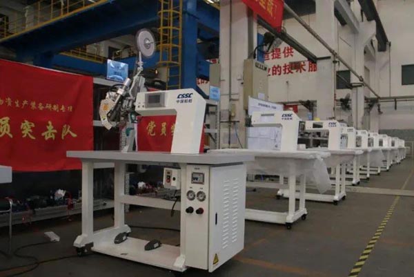 ????經(jīng)過11晝夜的連續(xù)奮戰(zhàn),中國船舶集團完成了N95口罩機、平面口罩機、壓條機等三型關鍵設備樣機試制工作,性能指標完全滿足設計要求,并全面鋪開量產(chǎn)設備的總裝調(diào)試,第15天就實現(xiàn)了量產(chǎn)設備交付,已交付壓條機、平面口罩機和超聲波點焊機50余臺套,滿足當前疫情防控工作的急需。在緊急馳援國資系統(tǒng)所屬企業(yè)相關設備需求的同時,面向全國抗疫戰(zhàn)場各類企事業(yè)單位提供相關設備,累計預訂口罩機110余臺、壓條機90余臺和超聲波點焊機340余套。
