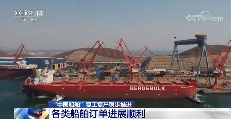????眼下全國(guó)在做好疫情防控的同時(shí),復(fù)工復(fù)產(chǎn)的速度不斷加快,我國(guó)經(jīng)濟(jì)也呈現(xiàn)加速回暖態(tài)勢(shì)。我國(guó)是世界第一造船大國(guó),船舶訂單一直穩(wěn)居全球第一,今年以來(lái),中國(guó)船舶工業(yè)的生產(chǎn)和研發(fā)也受到疫情的一定影響。復(fù)工復(fù)產(chǎn)以來(lái),我國(guó)船舶工業(yè)的生產(chǎn)進(jìn)展如何?下面就和記者一起走進(jìn)各大船廠去看看。