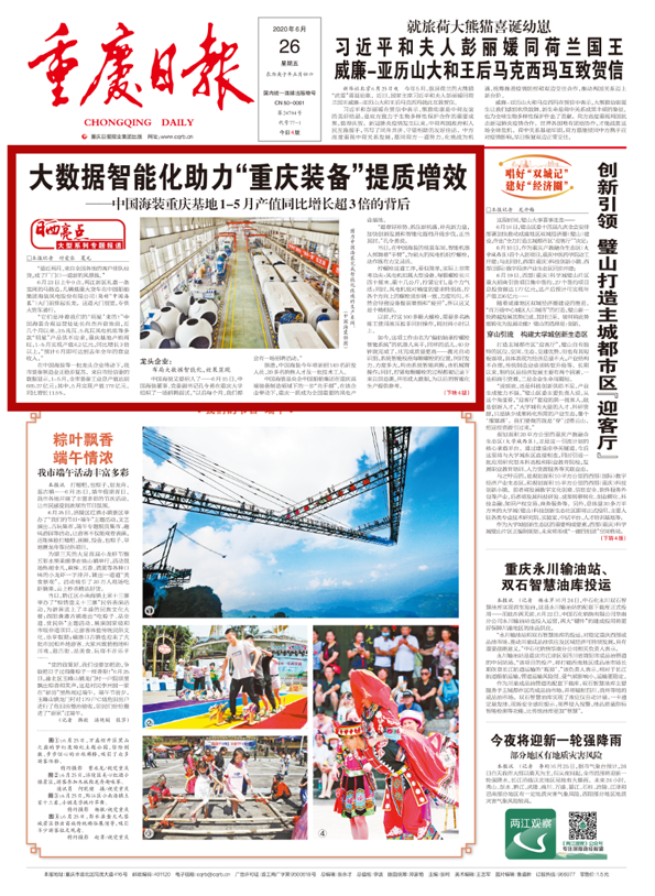近日,重慶日報(bào)頭版頭條以《大數(shù)據(jù)智能化助力“重慶裝備”提質(zhì)增效——中國海裝重慶基地1-5月產(chǎn)值同比增長超3倍的背后》,為題對中國船舶集團(tuán)旗下中國海裝進(jìn)行了報(bào)道,文章對后疫情時(shí)代,中國海裝如何履行央企責(zé)任,做好“六穩(wěn)”工作,落實(shí)“六?!比蝿?wù),助力重慶裝備制造業(yè)穩(wěn)步復(fù)蘇,奮力實(shí)現(xiàn)高質(zhì)量發(fā)展的舉措與成效進(jìn)行了深入分析。