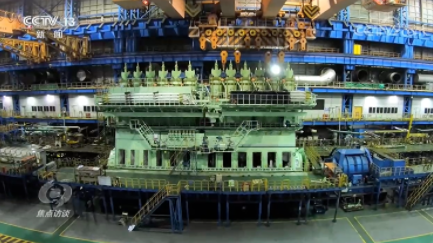 邵煜:“一個氣缸套的重量將近20噸,而氣缸套上面還組裝有氣缸蓋、排氣閥、噴油器等一系列組件,加起來大約就有一百多個?!?