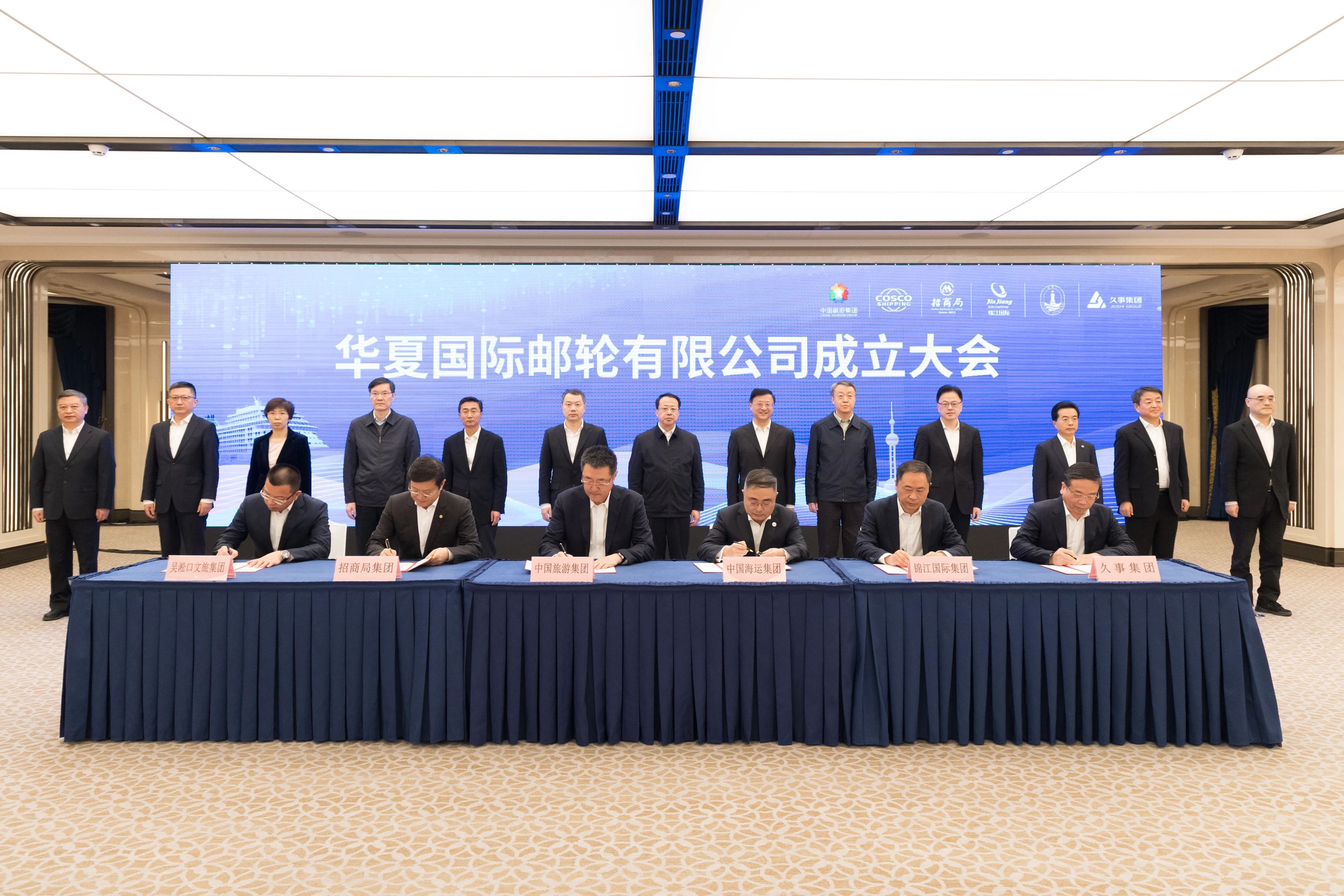 成立大會上,龔正、陳寅為華夏國際郵輪有限公司揭牌。中國旅游集團、中國遠洋海運集團、招商局集團、錦江國際集團、上海久事集團、吳淞口文旅投資集團相關(guān)負責(zé)同志簽約。