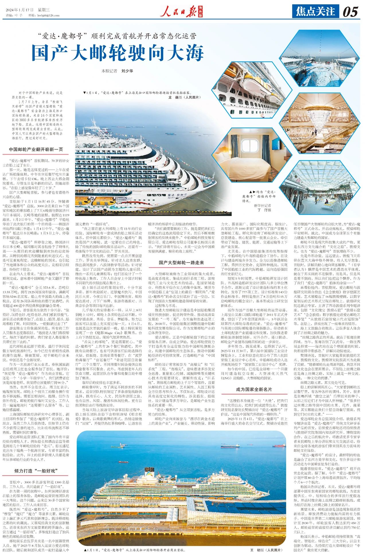 1月17日,人民日報(bào)海外版第五版焦點(diǎn)關(guān)注刊發(fā)整版文章,聚焦“愛達(dá)·魔都號”。