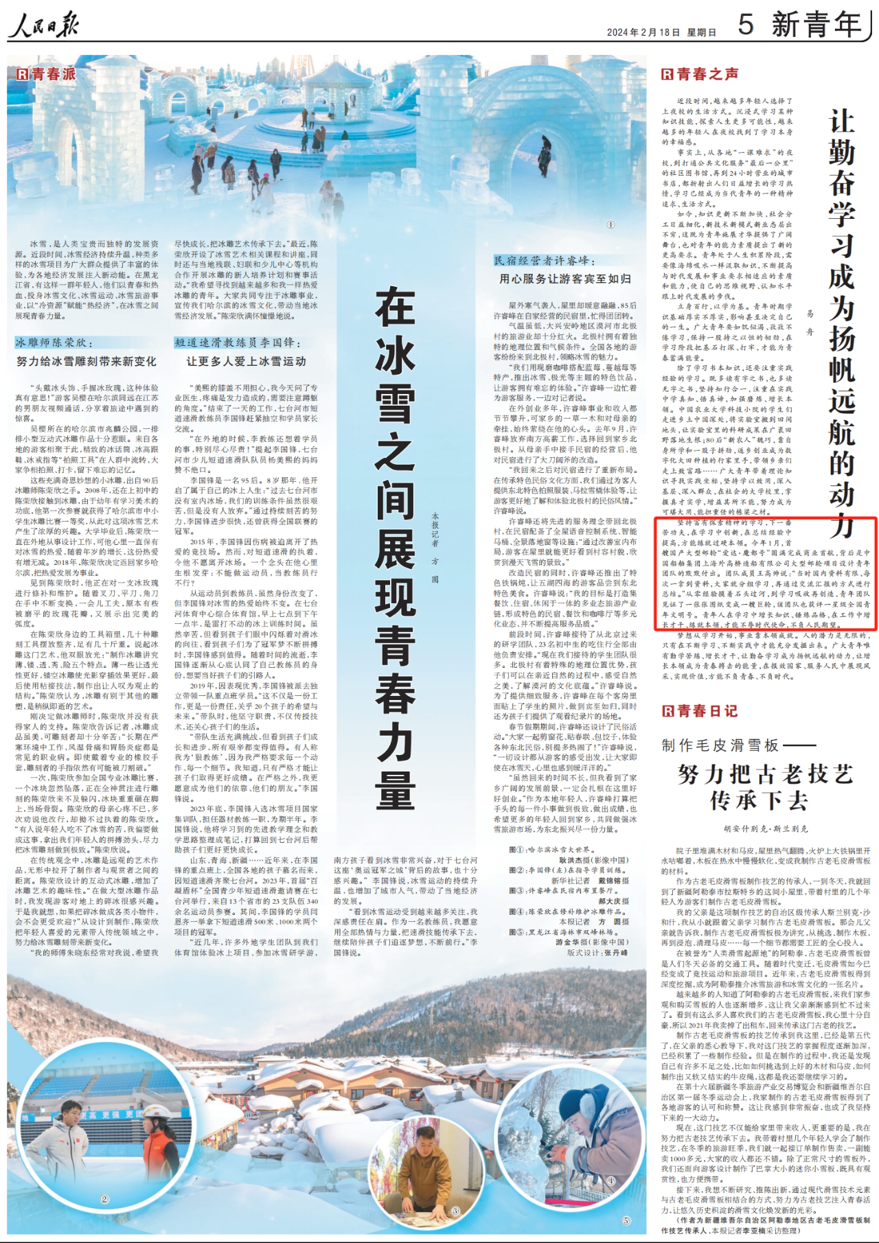 今年1月,首艘國產(chǎn)大型郵輪“愛達(dá)·魔都號”圓滿完成商業(yè)首航,背后是中國船舶集團(tuán)上海外高橋造船有限公司大型郵輪項(xiàng)目設(shè)計(jì)青年團(tuán)隊(duì)的默默付出。團(tuán)隊(duì)成員王高帥說:“當(dāng)時(shí)國內(nèi)資料有限,每次一拿到資料,大家就分組學(xué)習(xí),再通過交流匯報(bào)的方式進(jìn)行總結(jié)。”從零經(jīng)驗(yàn)摸著石頭過河,到學(xué)習(xí)吸收再創(chuàng)造,青年團(tuán)隊(duì)見證了一張張圖紙變成一艘巨輪,該團(tuán)隊(duì)也獲評一星級全國青年文明號。青年人在學(xué)習(xí)中增長知識、錘煉品格,在工作中增長才干、練就本領(lǐng),才能不辱時(shí)代使命,不負(fù)人民期望。