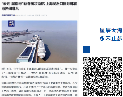 2月14日,位于寶山的上海吳淞口國際郵輪港熱鬧非凡,再一次迎來了“三船同靠”的盛況——“愛達(dá)·魔都號”春節(jié)航次返航,與“鼓浪嶼”號、“藍(lán)夢之星”號一同靠泊吳淞口郵輪港。