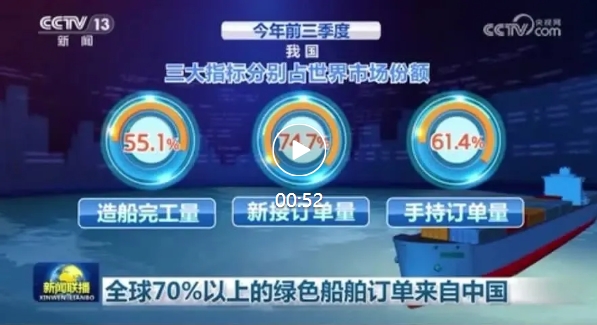 最新數(shù)據(jù)顯示,今年前三季度,我國(guó)承接了全球70%以上的綠色船舶訂單,并實(shí)現(xiàn)了對(duì)主流船型的全覆蓋。