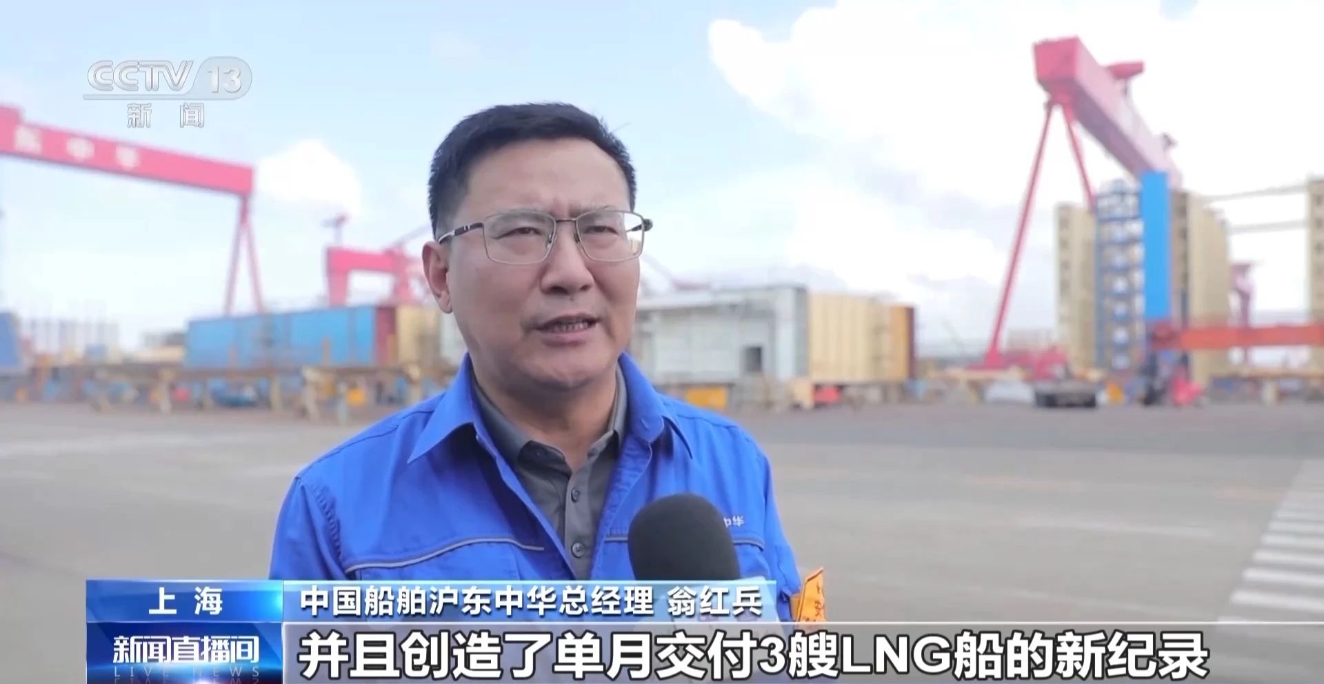 今年9月,在滬東中華造船廠,一個(gè)月就交付了3艘LNG船,創(chuàng)造了中國(guó)船舶建造史上單月交付的新紀(jì)錄。