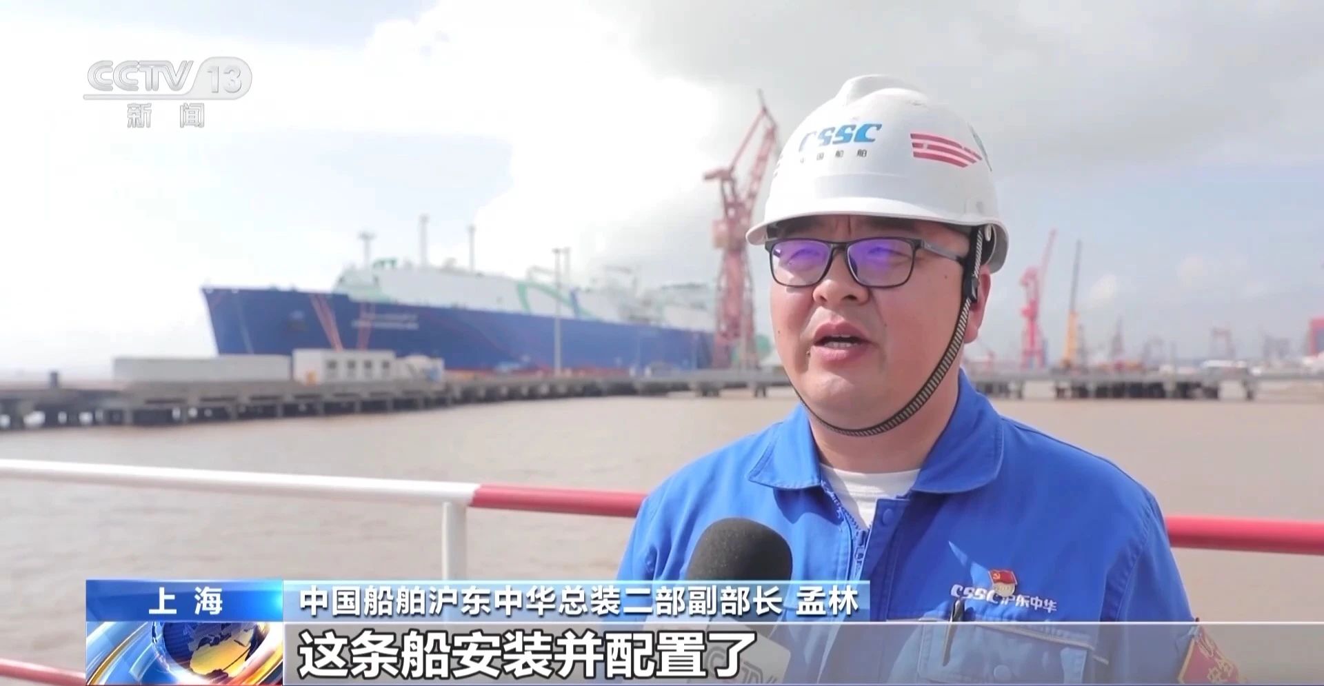 中國(guó)船舶滬東中華總裝二部副部長(zhǎng) 孟林:這條船安裝并配置了全球首臺(tái)套再液化裝置,國(guó)內(nèi)自主研發(fā)的廢氣再循環(huán)系統(tǒng),能夠有效地提高能效,也能夠滿足國(guó)際上的T3排放標(biāo)準(zhǔn)。