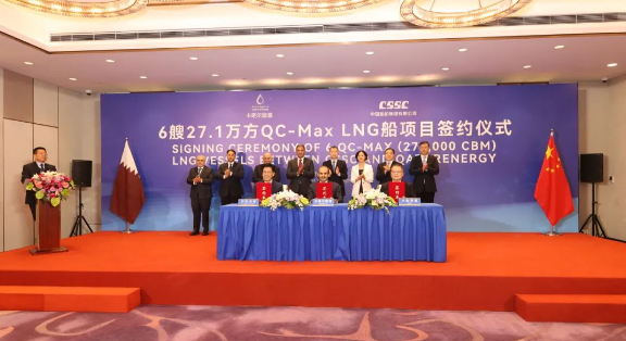 9月9日,三方新簽了6艘全球最大27.1萬立方米超大型LNG船訂單。至此,三方已累計(jì)簽訂24艘27.1萬立方米超大型LNG船、12艘17.4萬立方米大型LNG船,以載氣量計(jì),位居全球各船廠之首??ㄋ柲茉词聞?wù)國務(wù)大臣、卡塔爾能源總裁兼首席執(zhí)行官薩阿德·謝里達(dá)·阿爾卡比,上海市副市長陳杰,中國船舶集團(tuán)黨組成員、總會(huì)計(jì)師賈海英等出席簽約儀式。