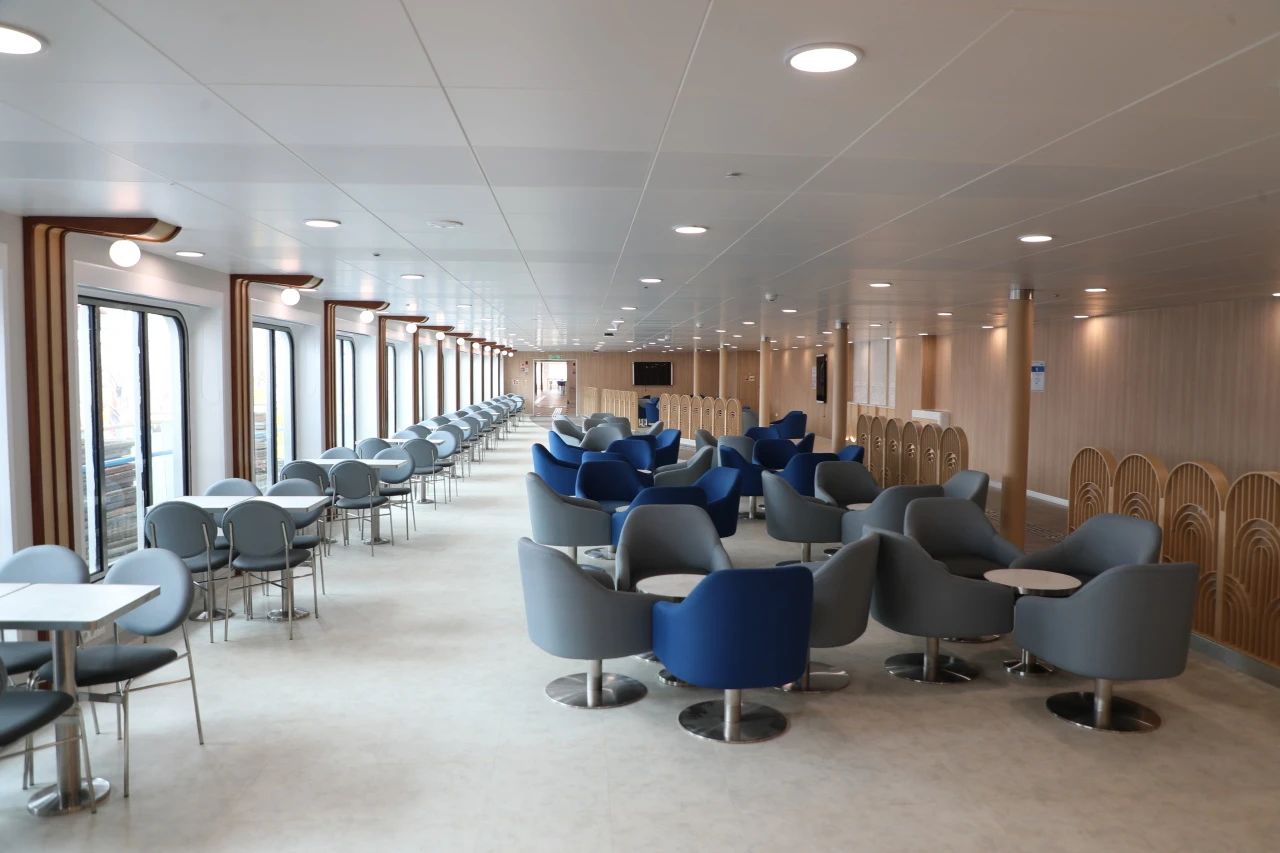 另外,該船還配有完整的隔離病房及防疫區(qū)等,空調(diào)通風(fēng)也進(jìn)行了特殊設(shè)計(jì),具備完善的生物安全應(yīng)對措施,是國內(nèi)建造的首艘取得全球最新的biosafe生物安全入級符號的豪華客滾船。