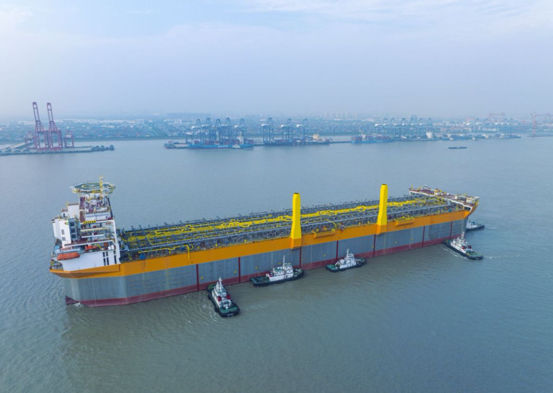 11月14日,由中國船舶集團(tuán)旗下外高橋造船為荷蘭SBM OFFSHORE公司建造的第五艘世界獨(dú)創(chuàng)230萬桶通用型海上浮式生產(chǎn)儲(chǔ)油輪(FPSO)“捷豹”號簽字交付。