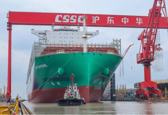 11月20日,由中國(guó)船舶集團(tuán)旗下滬東中華建造的全球最大24000TEU級(jí)液化天然氣(LNG)雙燃料動(dòng)力超大型集裝箱船首制船,提前10天順利出塢。