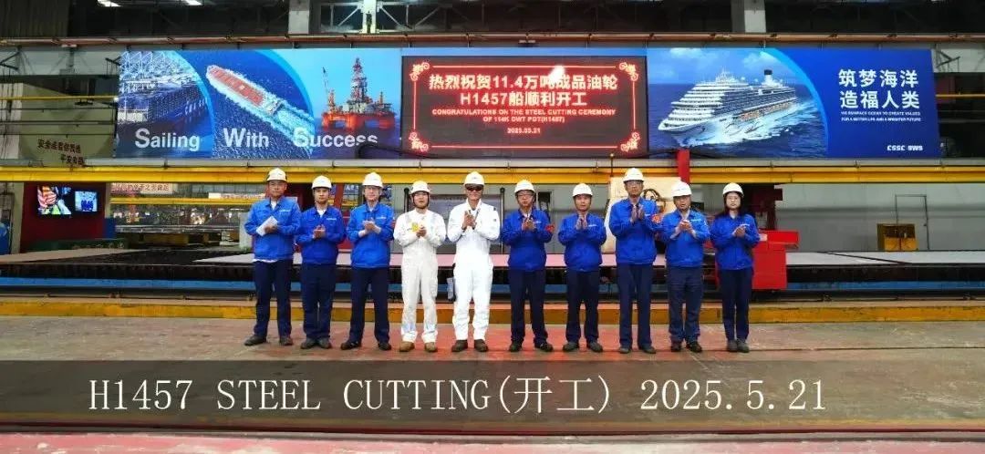 5月21日,外高橋造船為土耳其YASA公司建造的11.4萬噸阿芙拉型油船H1457船開工儀式順利舉行。目前,各項生產(chǎn)準備工作均在按計劃落實。