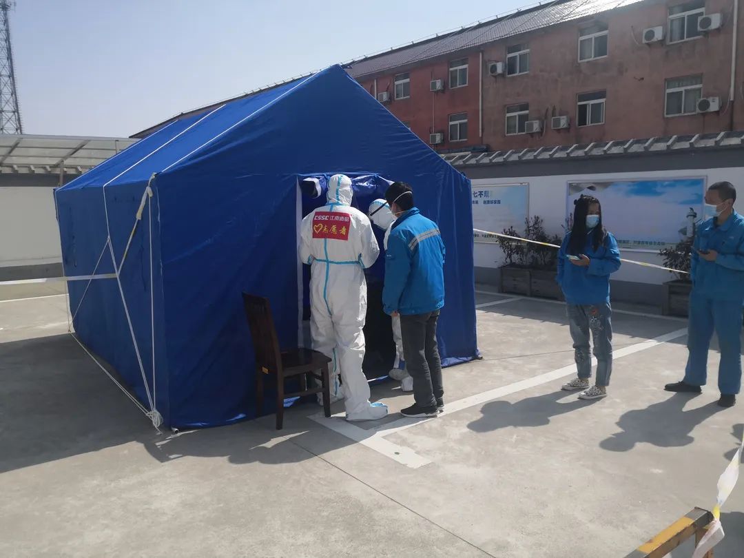 臨時黨支部和工作組的成立,把每個人都納入了組織,一些員工看到工作組成立后激動地表示,“終于找到組織了”。在他們的支持下,社區(qū)村居的核酸檢測由內(nèi)部志愿者配合醫(yī)護人員完成,不用江南造船再派出志愿者到村居,減少了人員交叉,降低了感染風險。